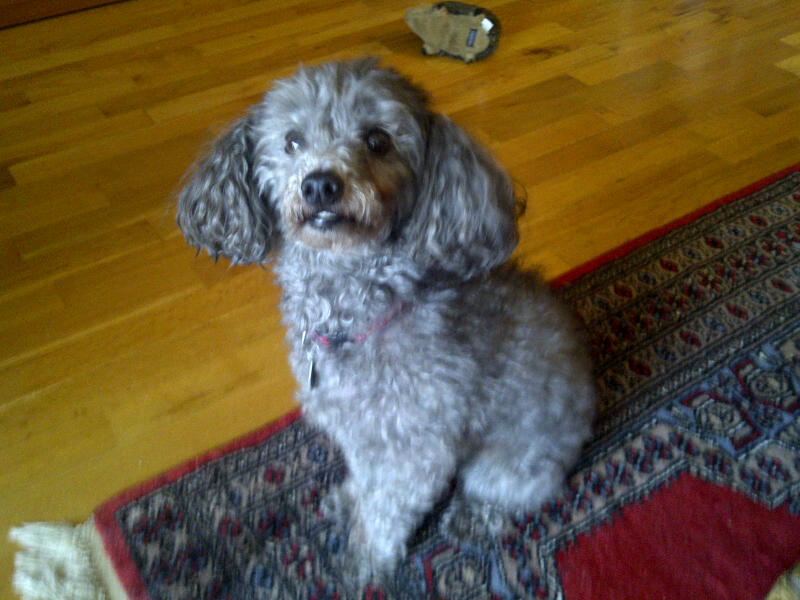 Cosette, hoping for sugar plums, or the doggie equivalent:
